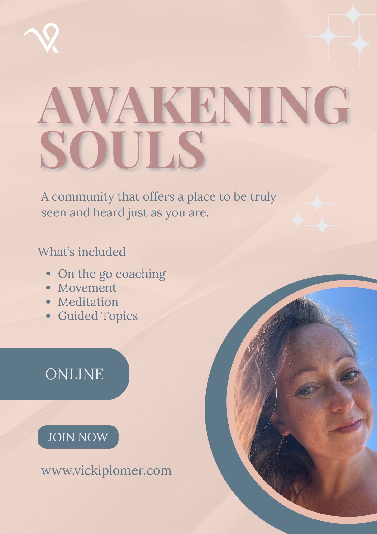 Awakening Souls is a sacred space for women ready to step into their power, heal old wounds, and embrace the life they truly desire. Each month, we gather as a community — supporting one another through life’s transitions, celebrating growth, and softening into new ways of being. Together, we awaken what has always been within: courage, compassion, and radiant self-worth.
